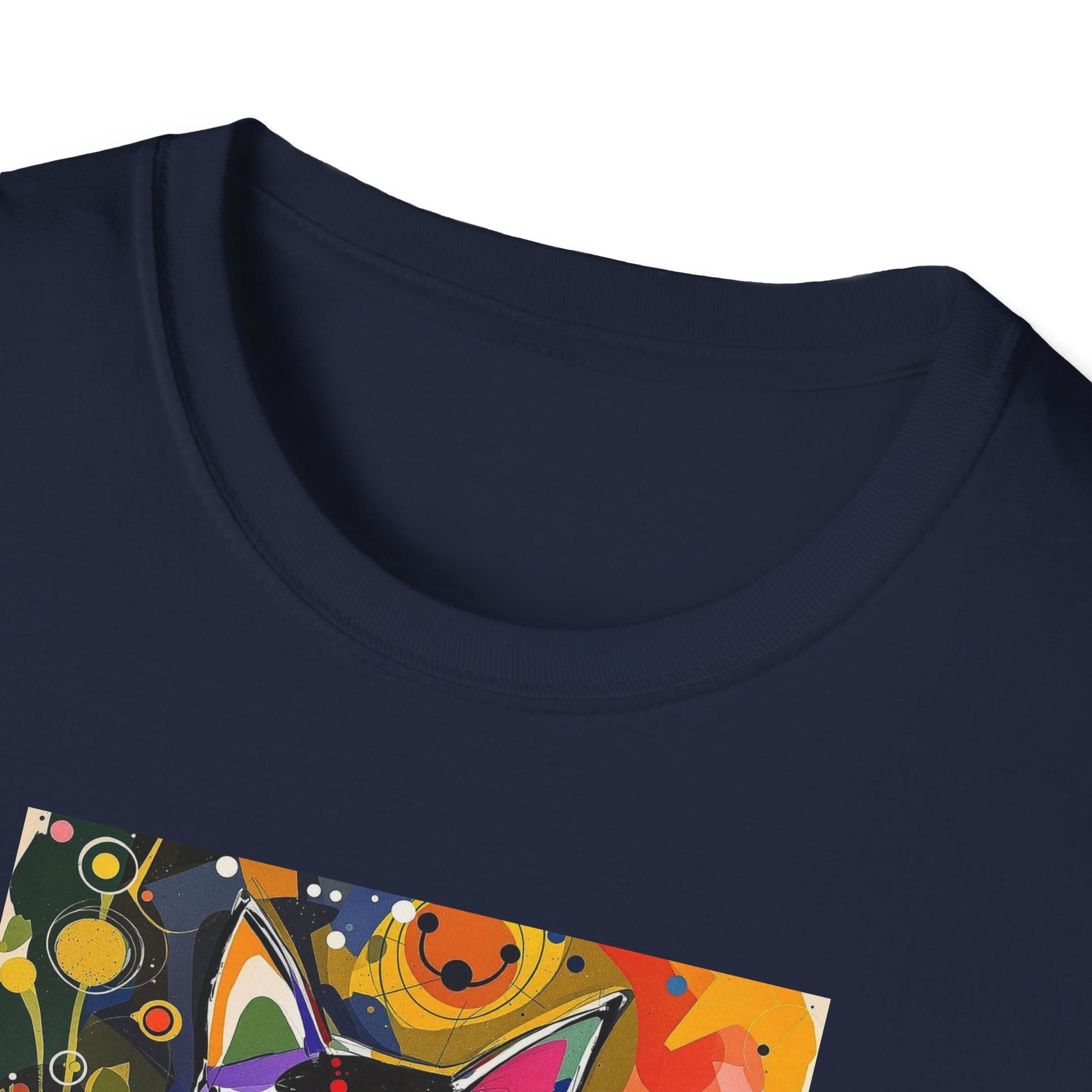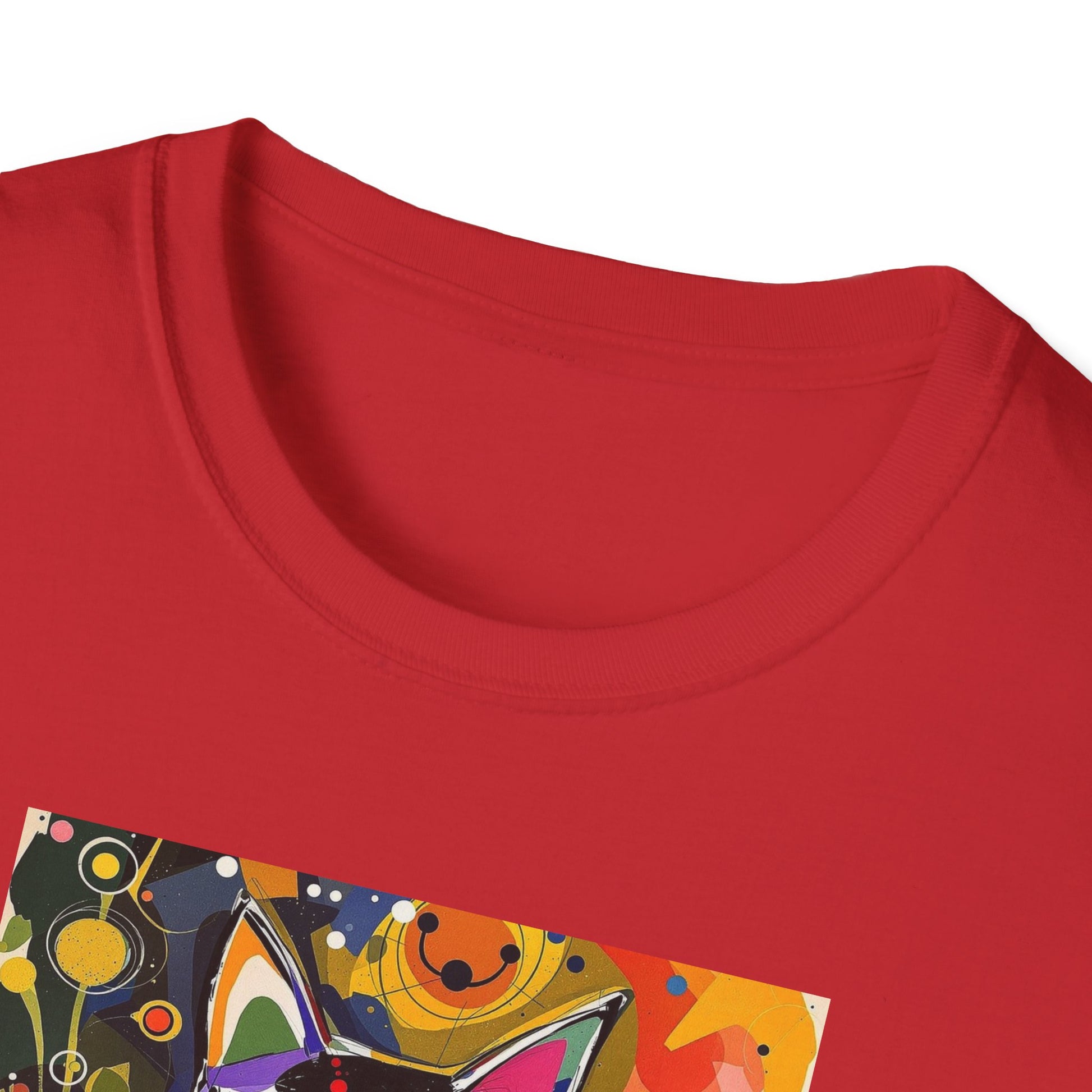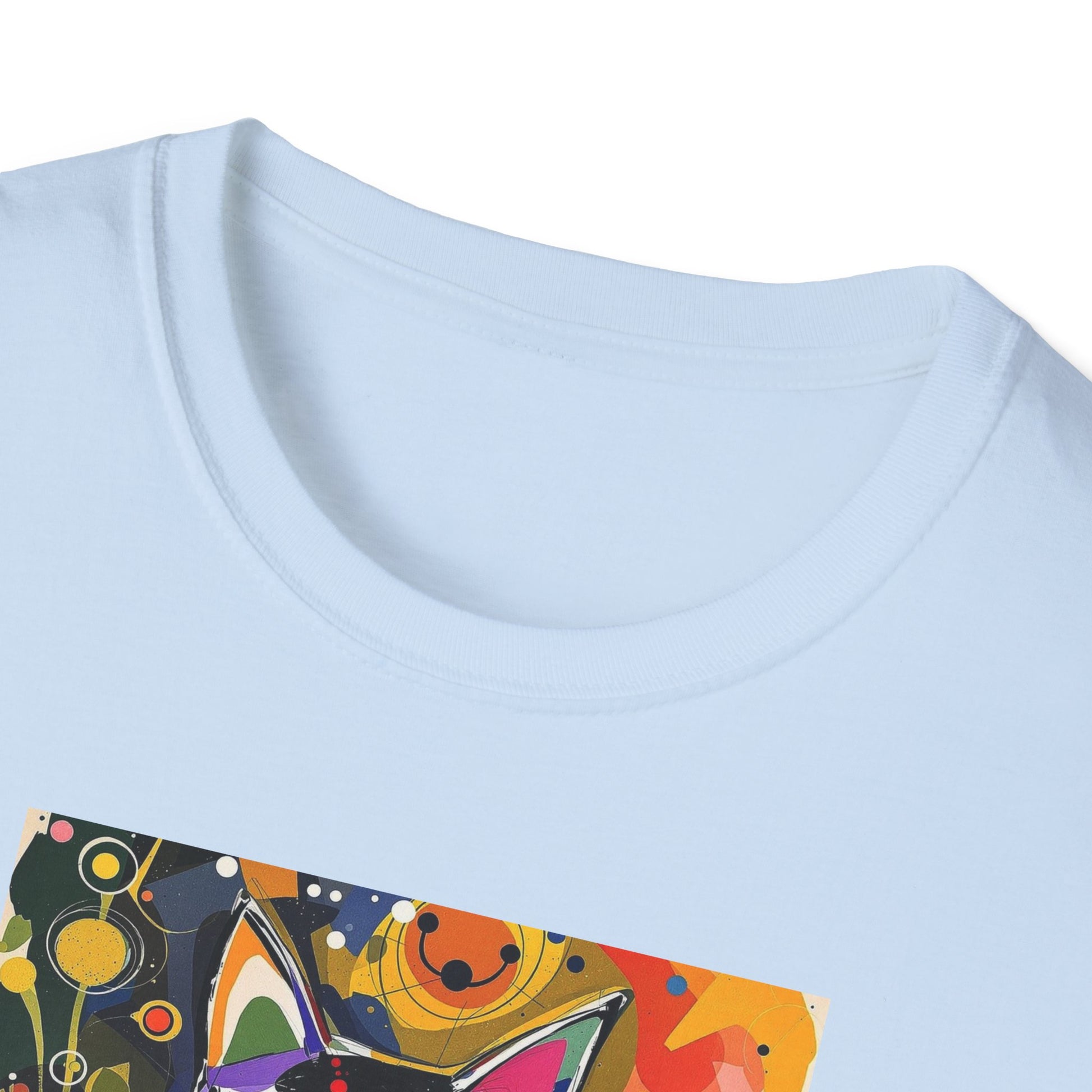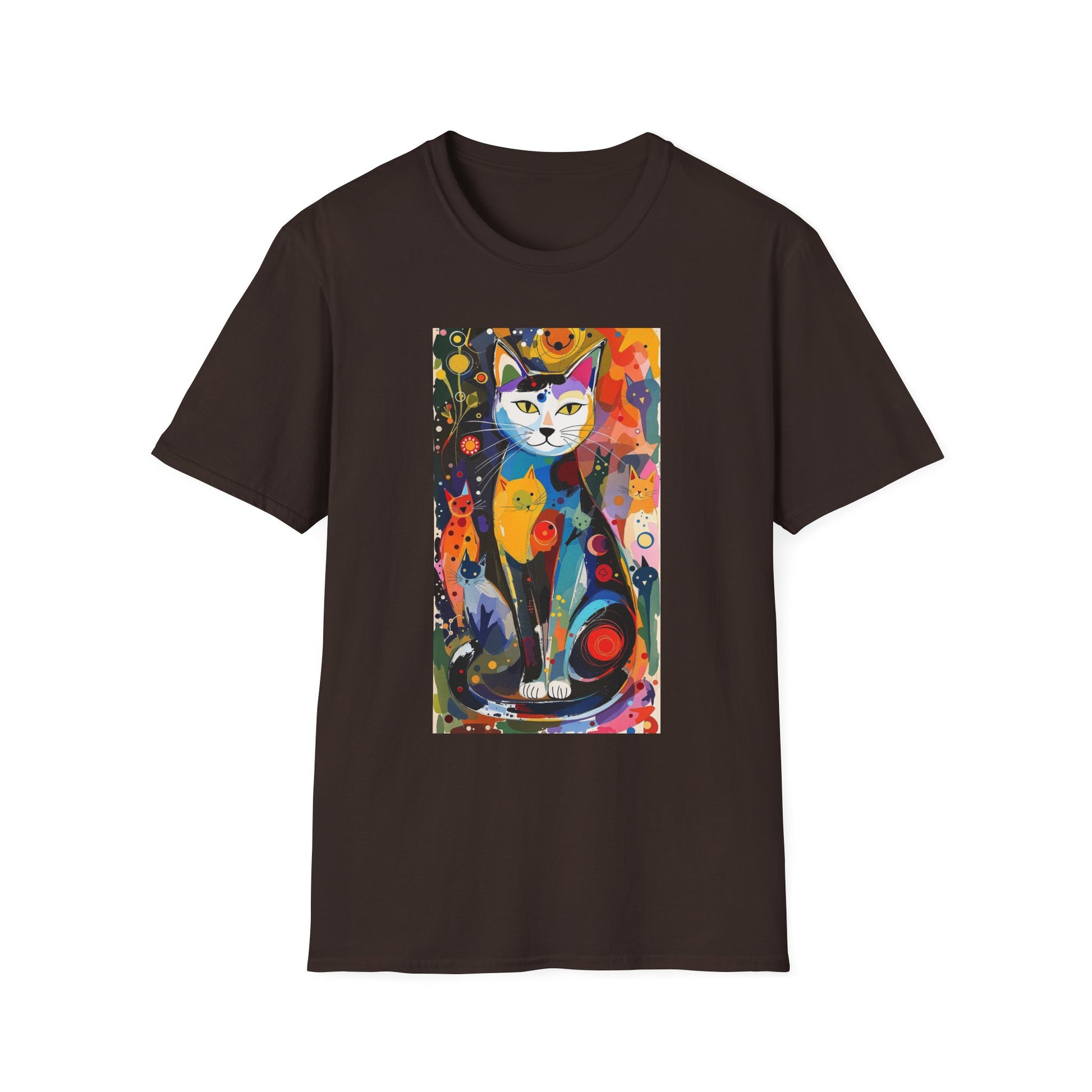 Modern art cat print design T-shirt for cat-lovers, perfect for adding a touch of whimsy to your casual outfits. This unisex T-shirt is made from durable and smooth fabric, ideal for everyday wear. A versatile style that can be dressed up or down for any occasion.