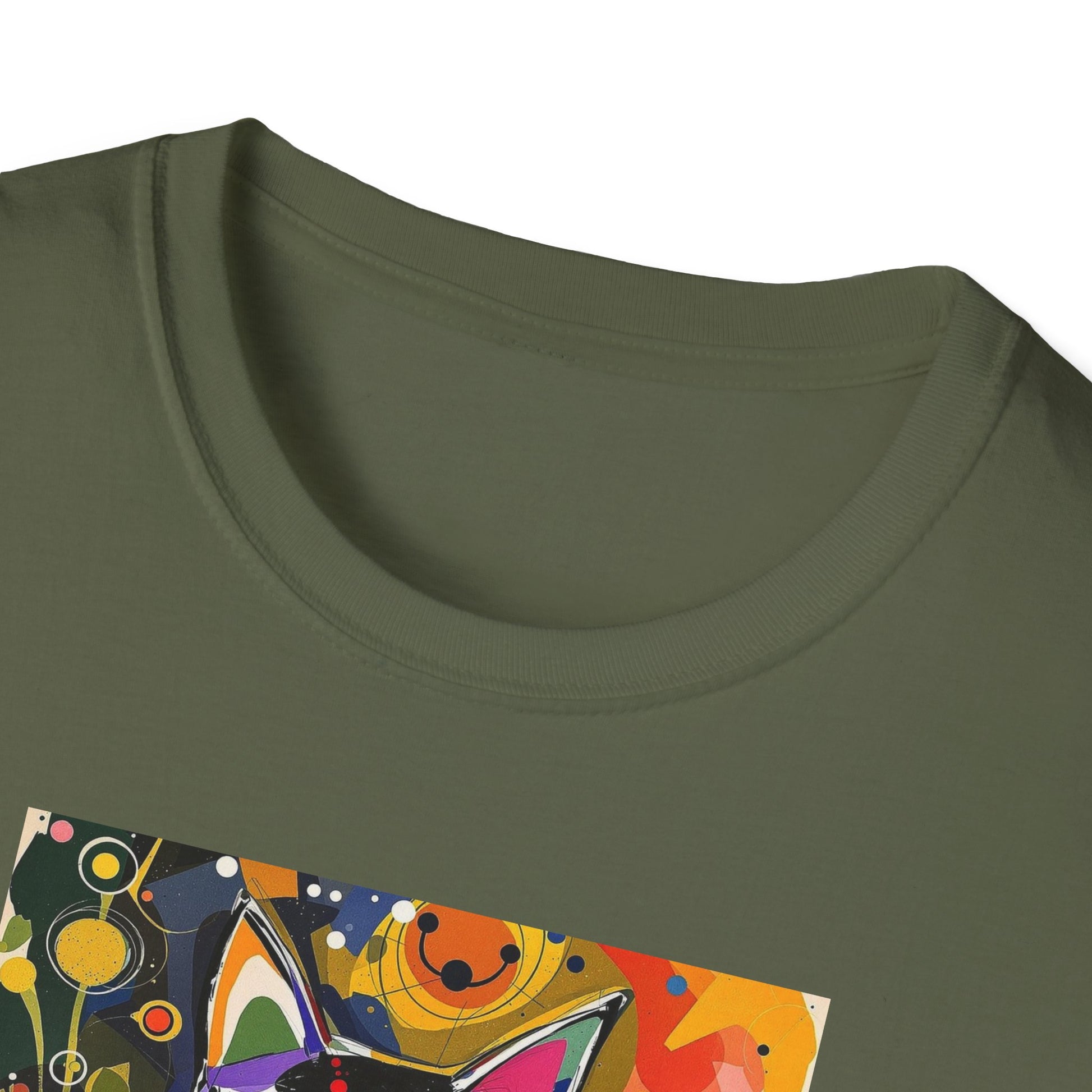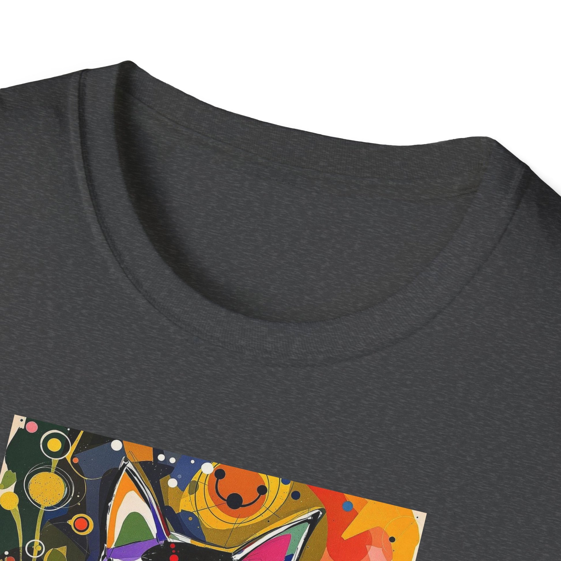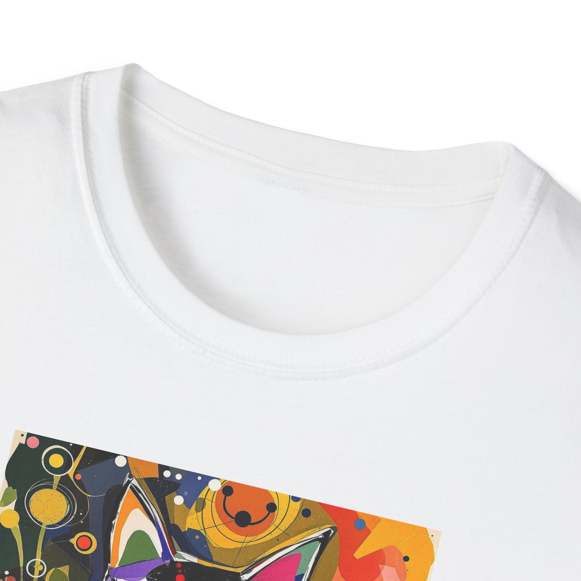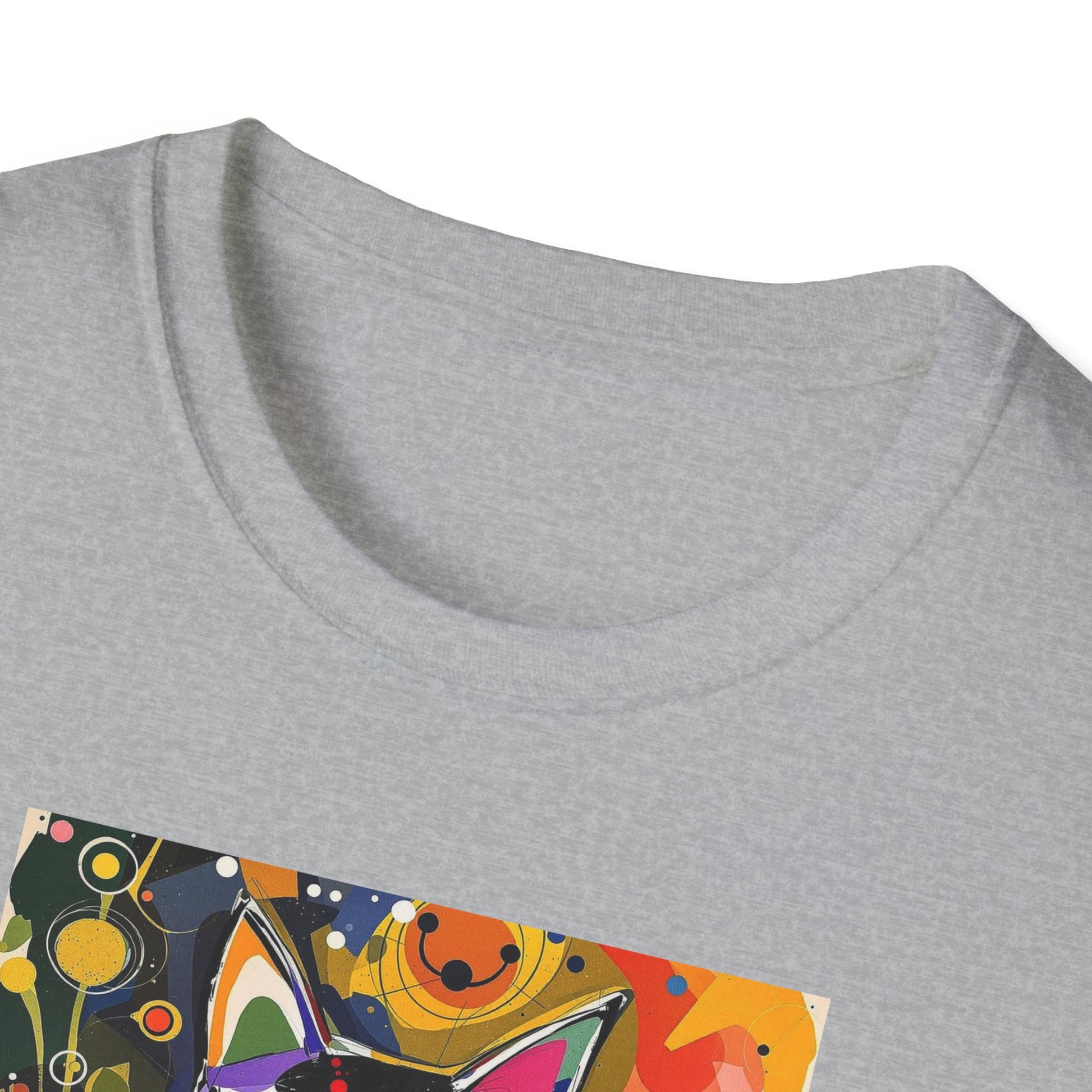 Modern art cat print design T-shirt for cat-lovers, perfect for adding a touch of whimsy to your casual outfits. This unisex T-shirt is made from durable and smooth fabric, ideal for everyday wear. A versatile style that can be dressed up or down for any occasion.