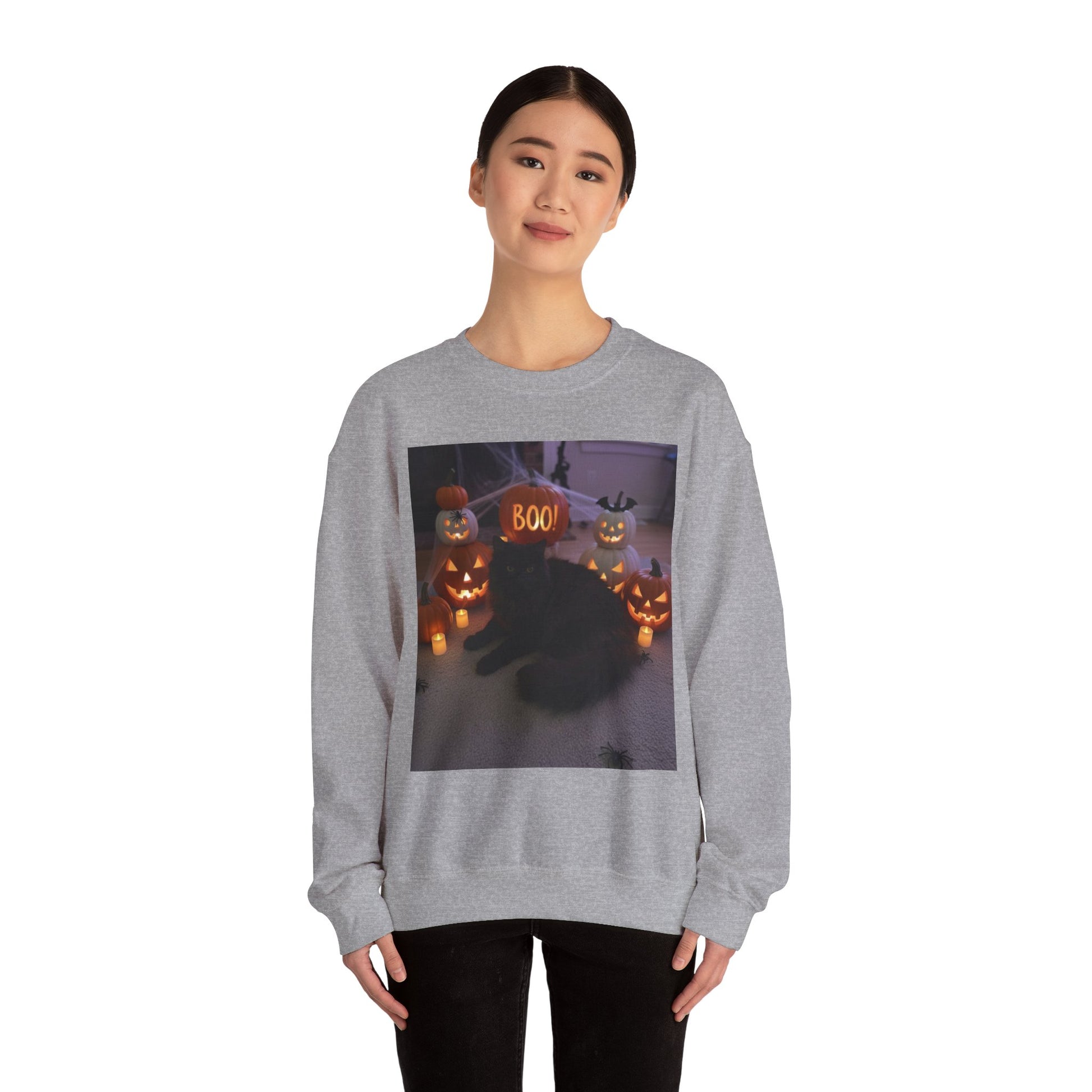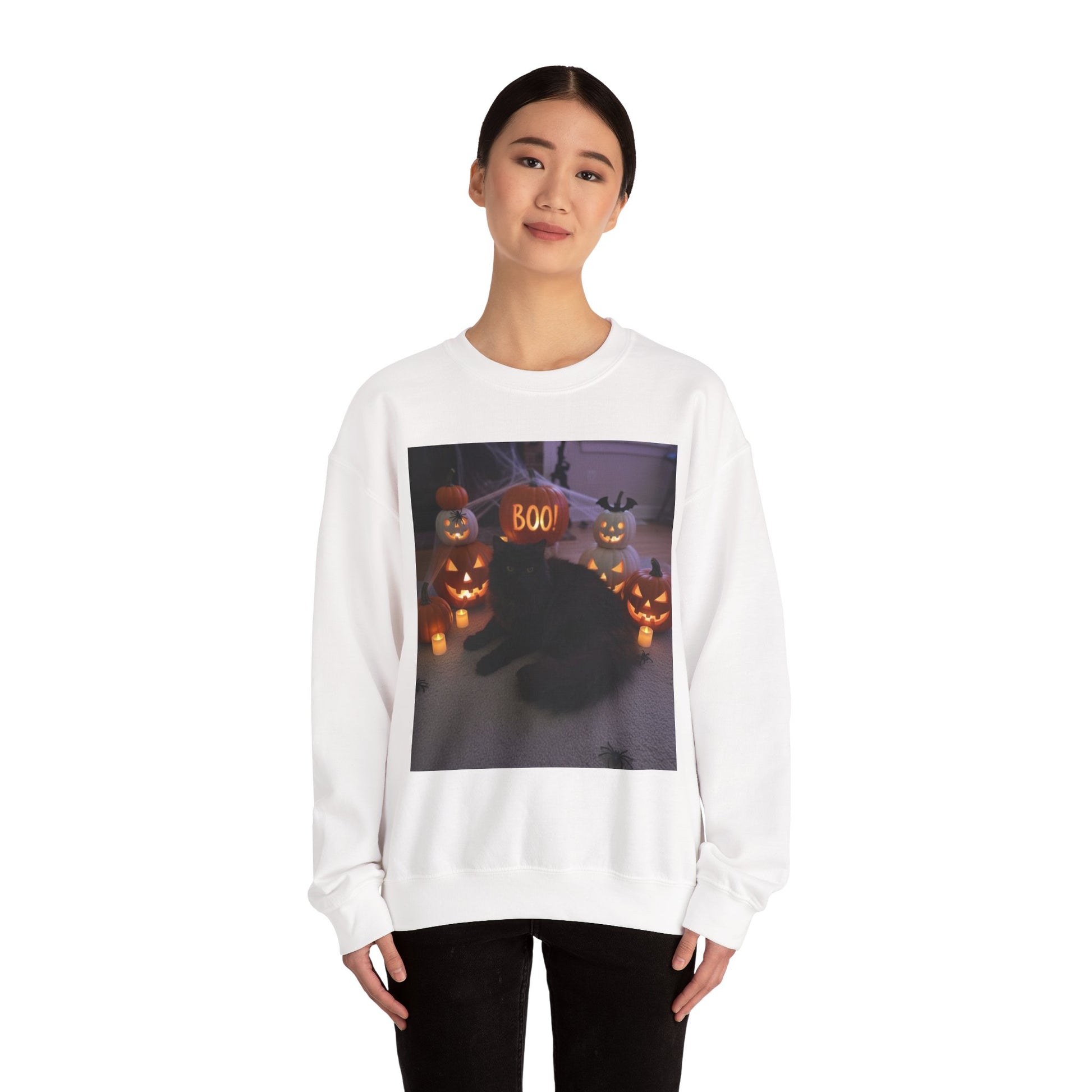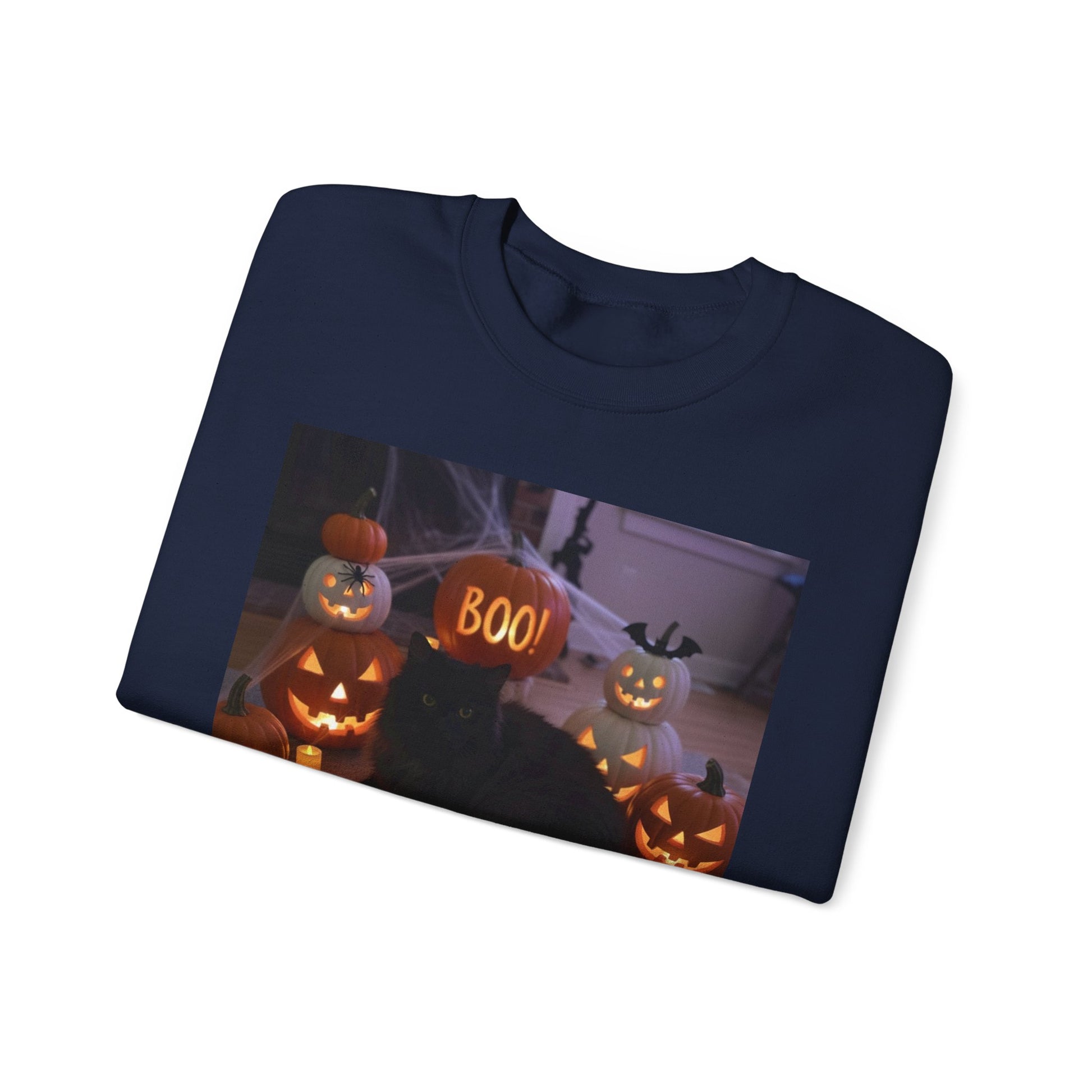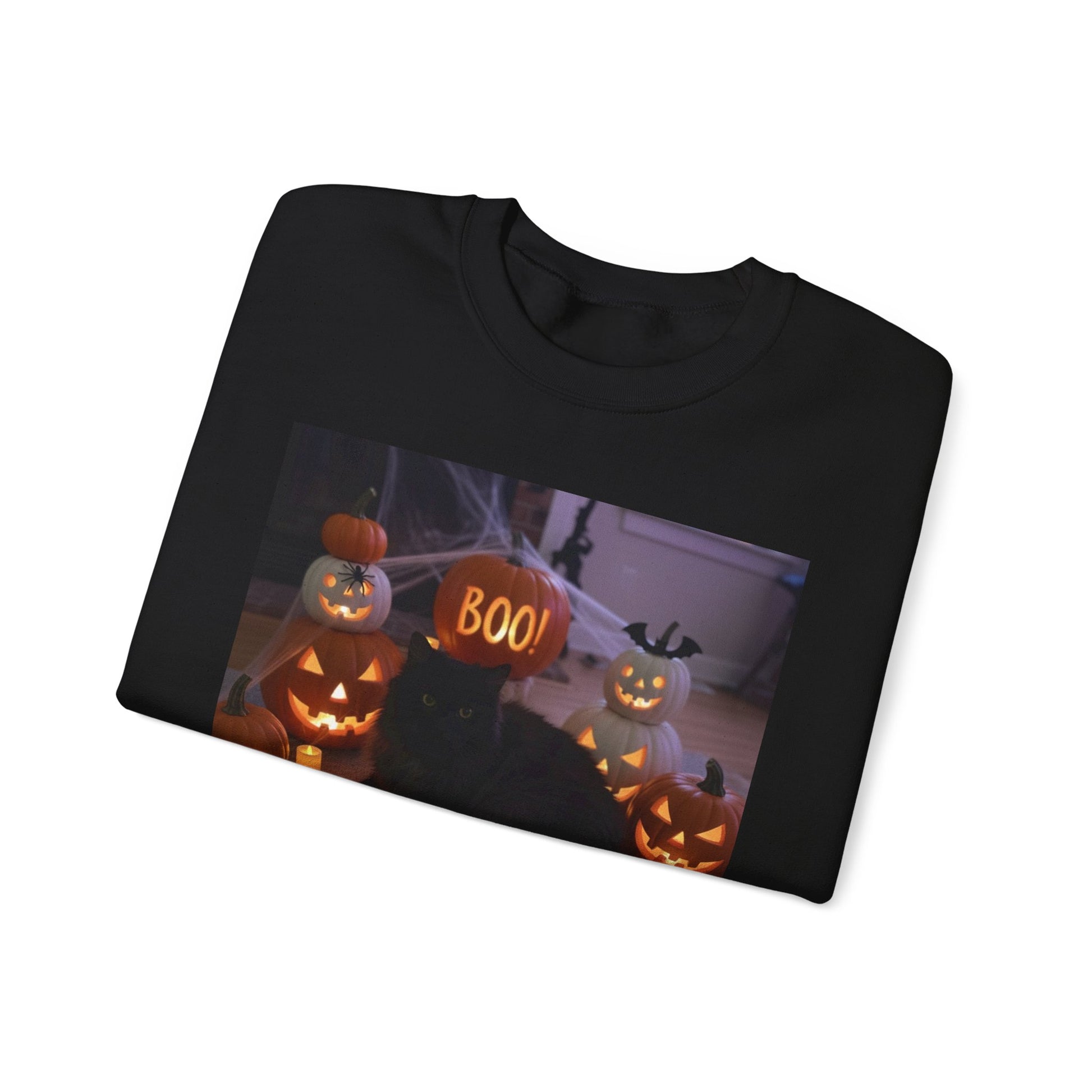 Halloween Cat Sweatshirt, Cozy Fall Apparel, Spooky Cat Crewneck, Unisex Sweatshirt, Boo Design Sweatshirt