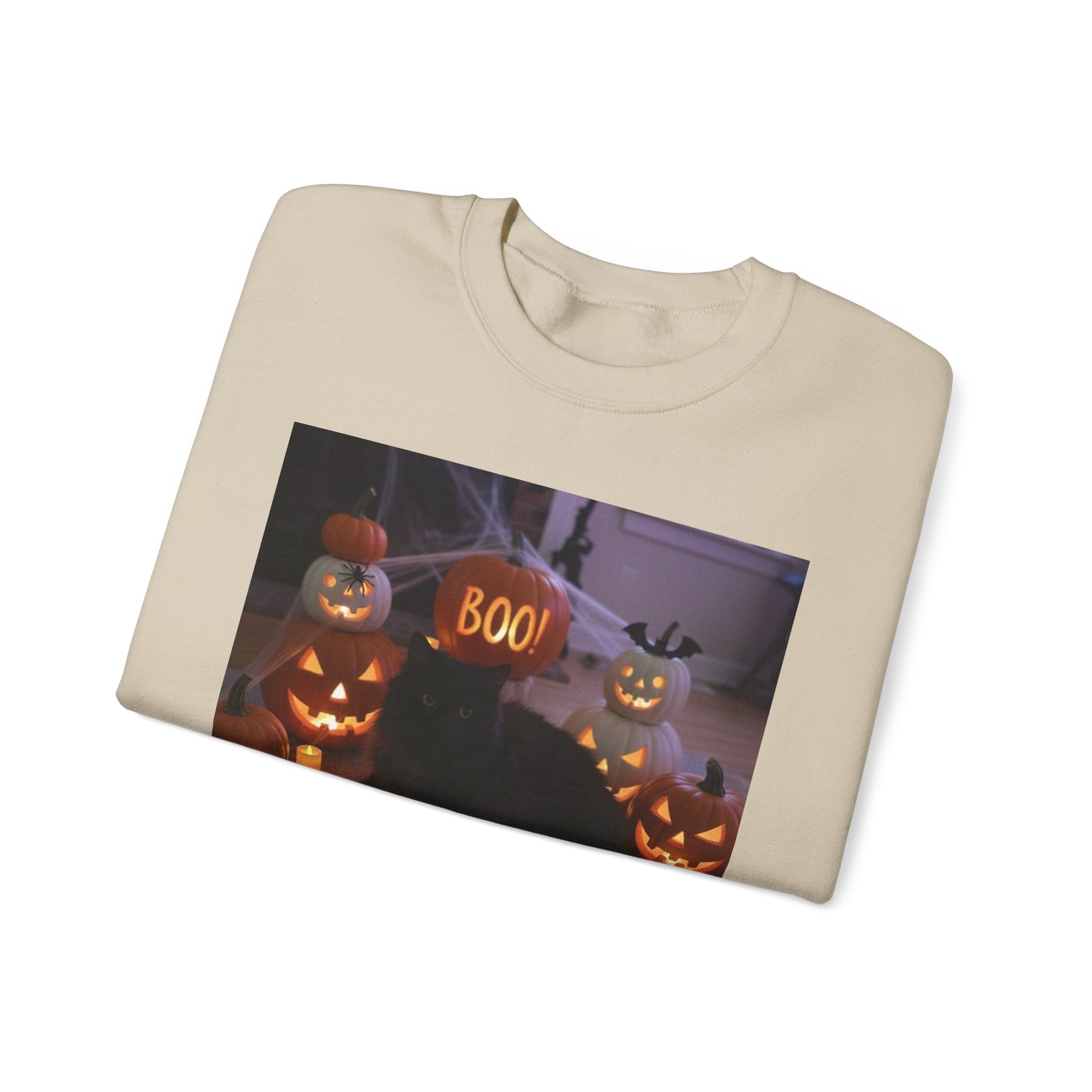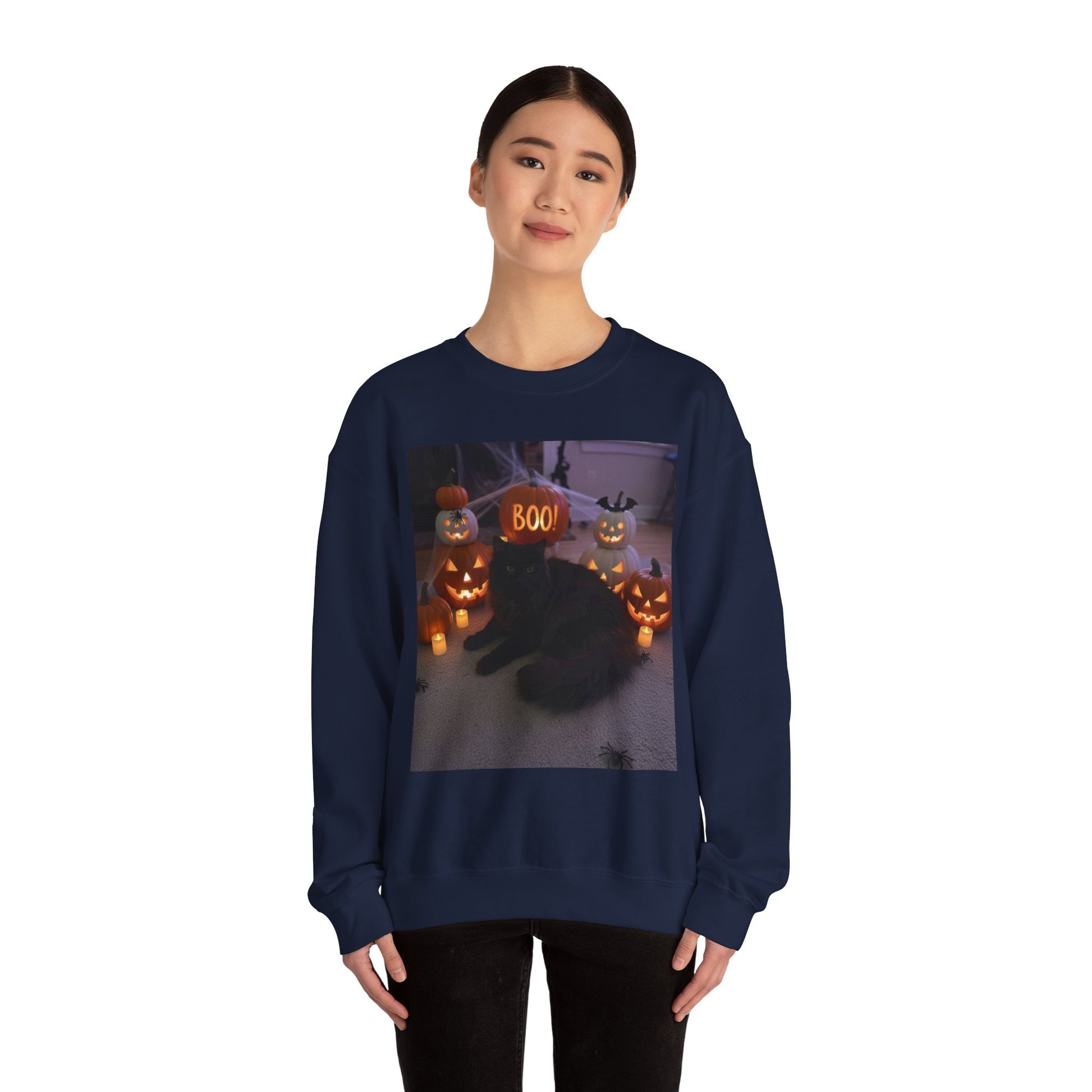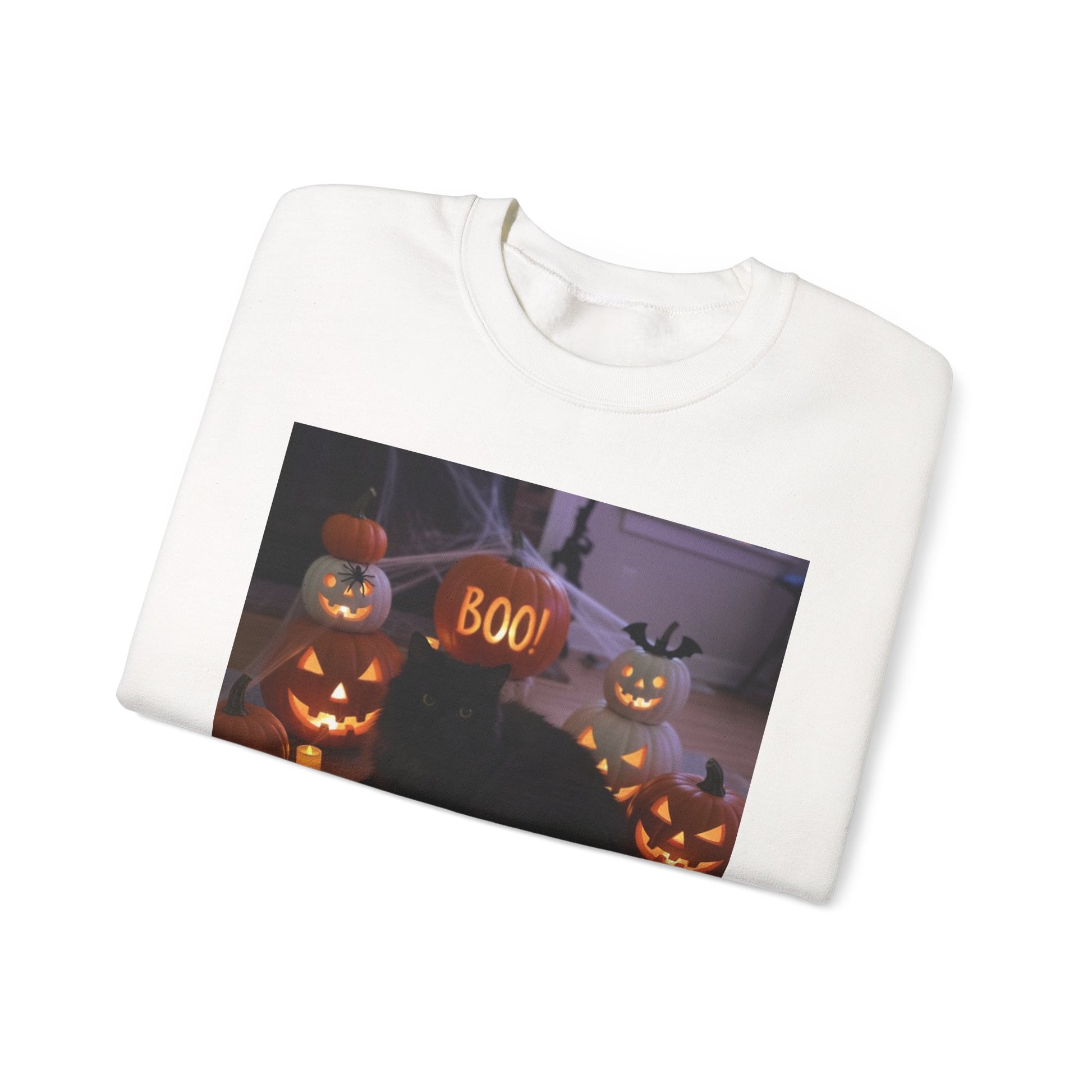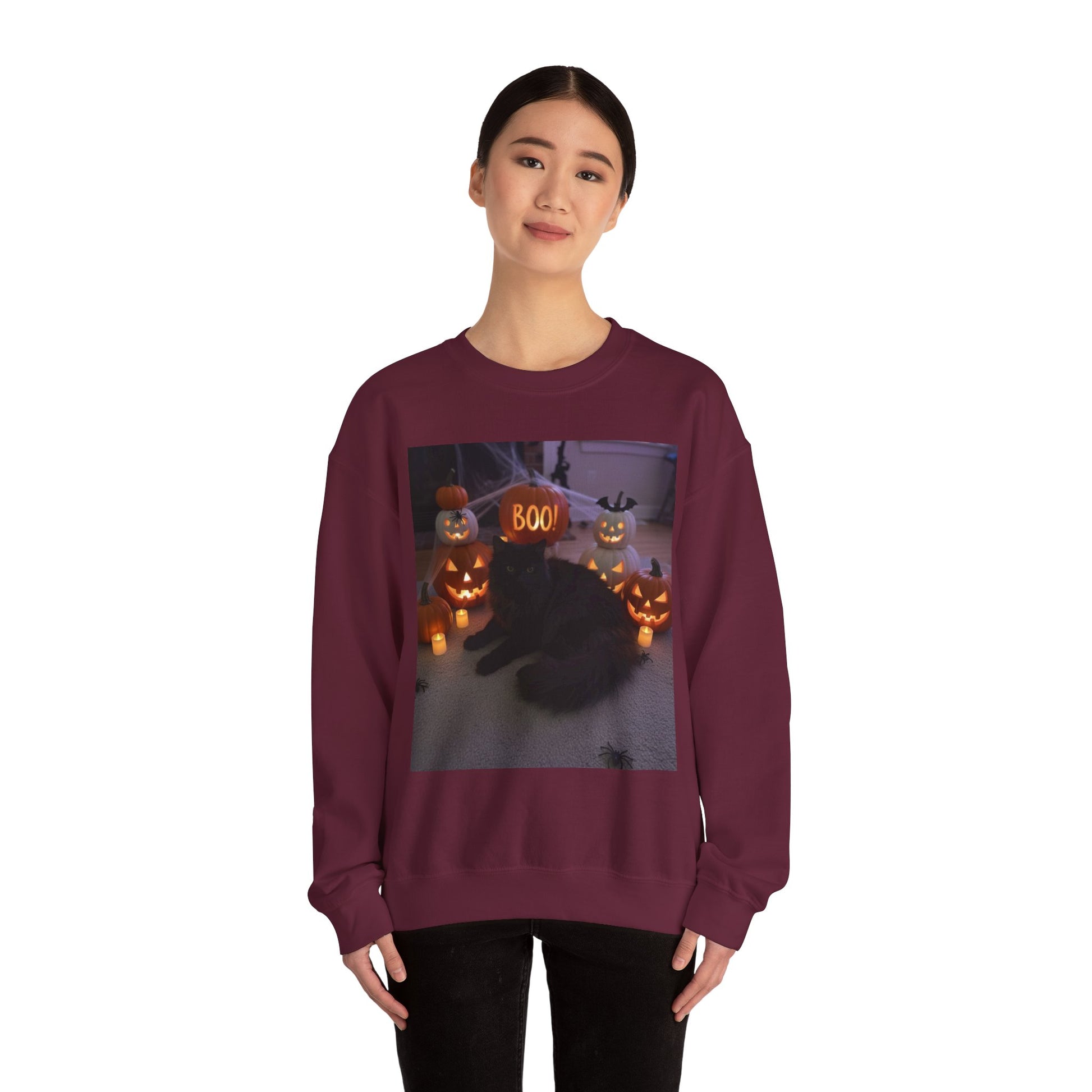 Halloween Cat Sweatshirt, Cozy Fall Apparel, Spooky Cat Crewneck, Unisex Sweatshirt, Boo Design Sweatshirt