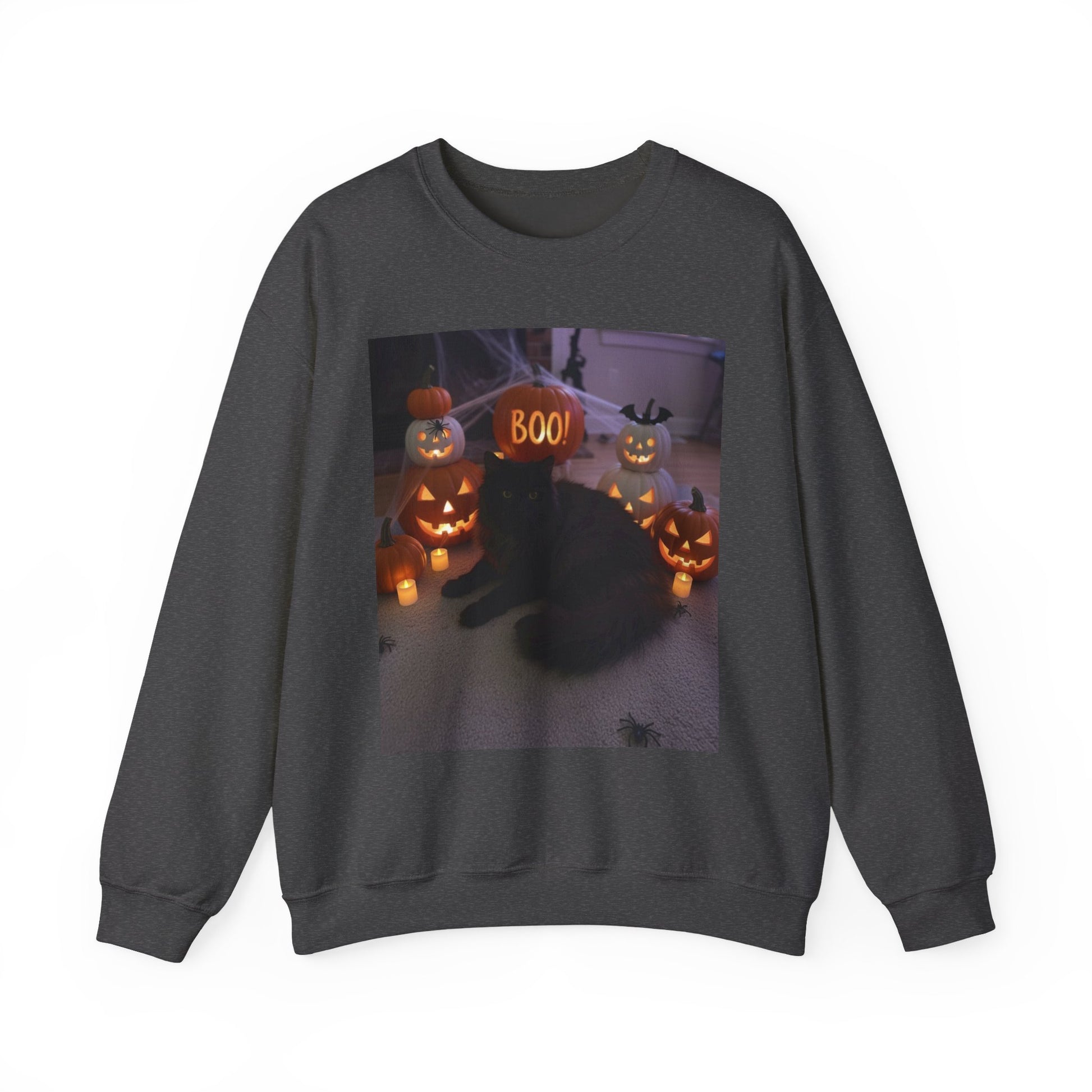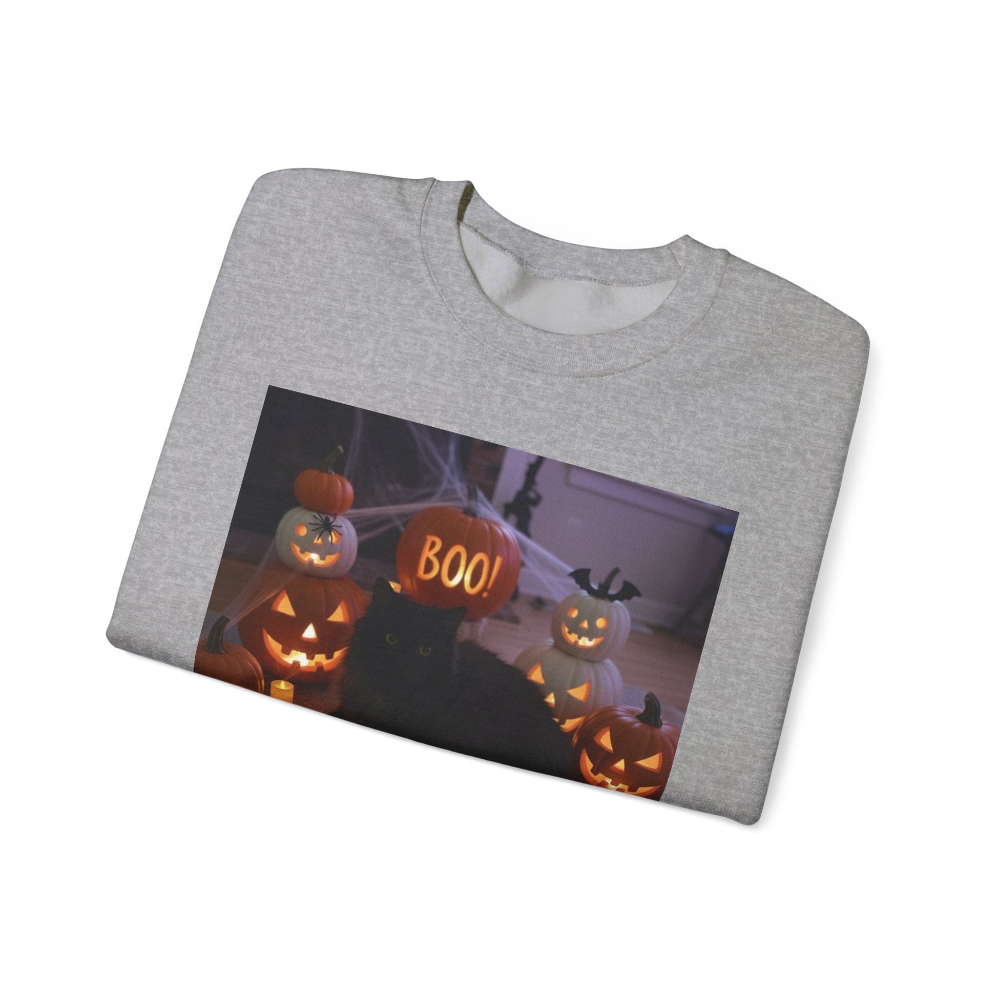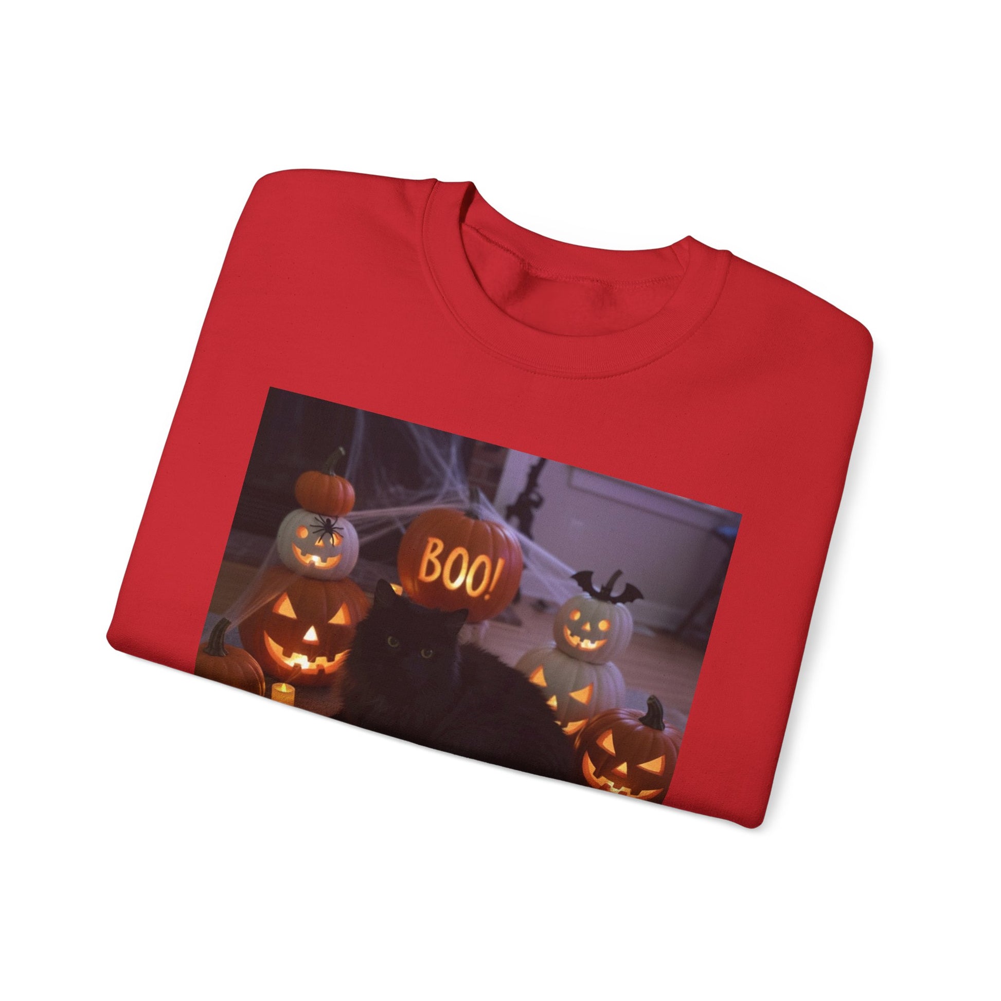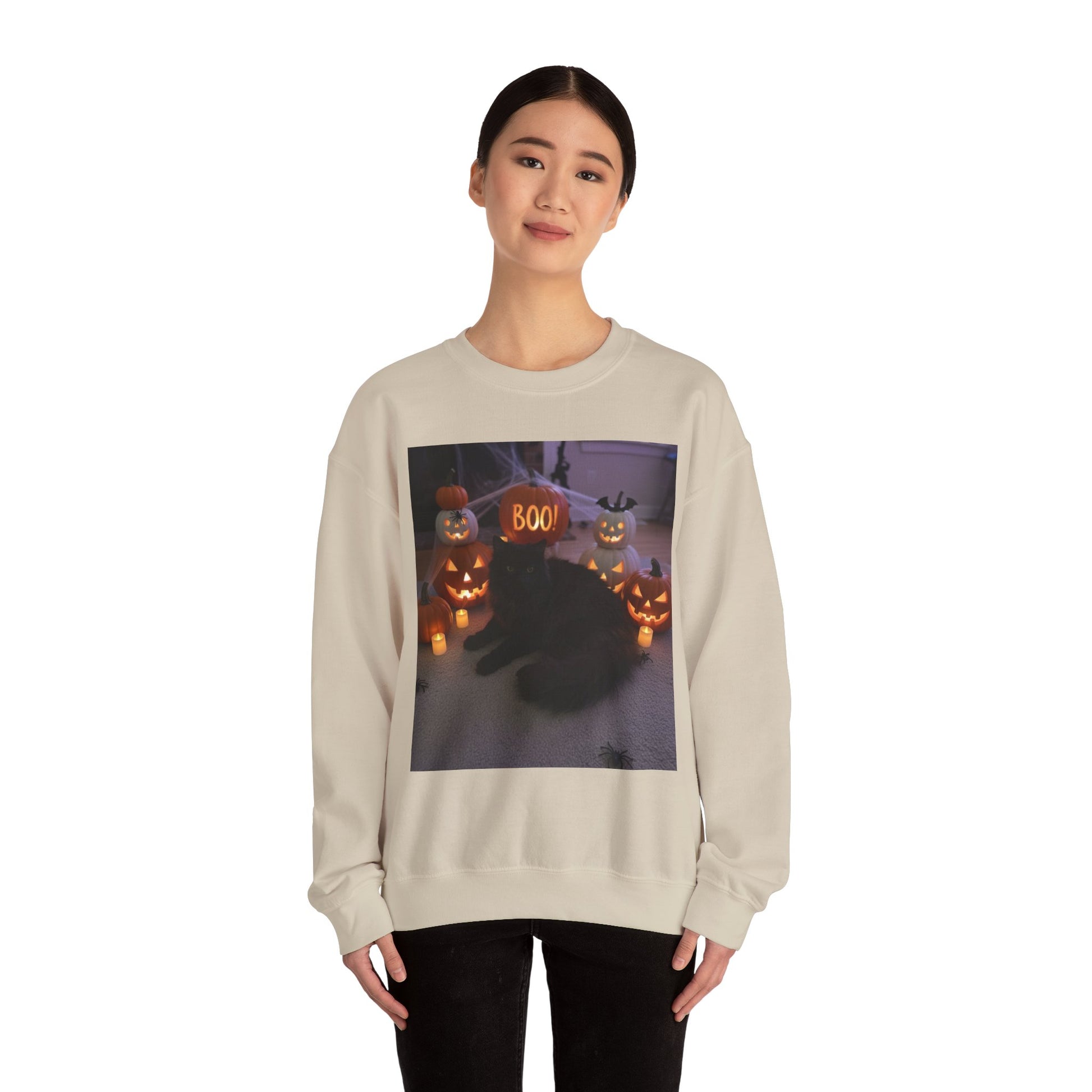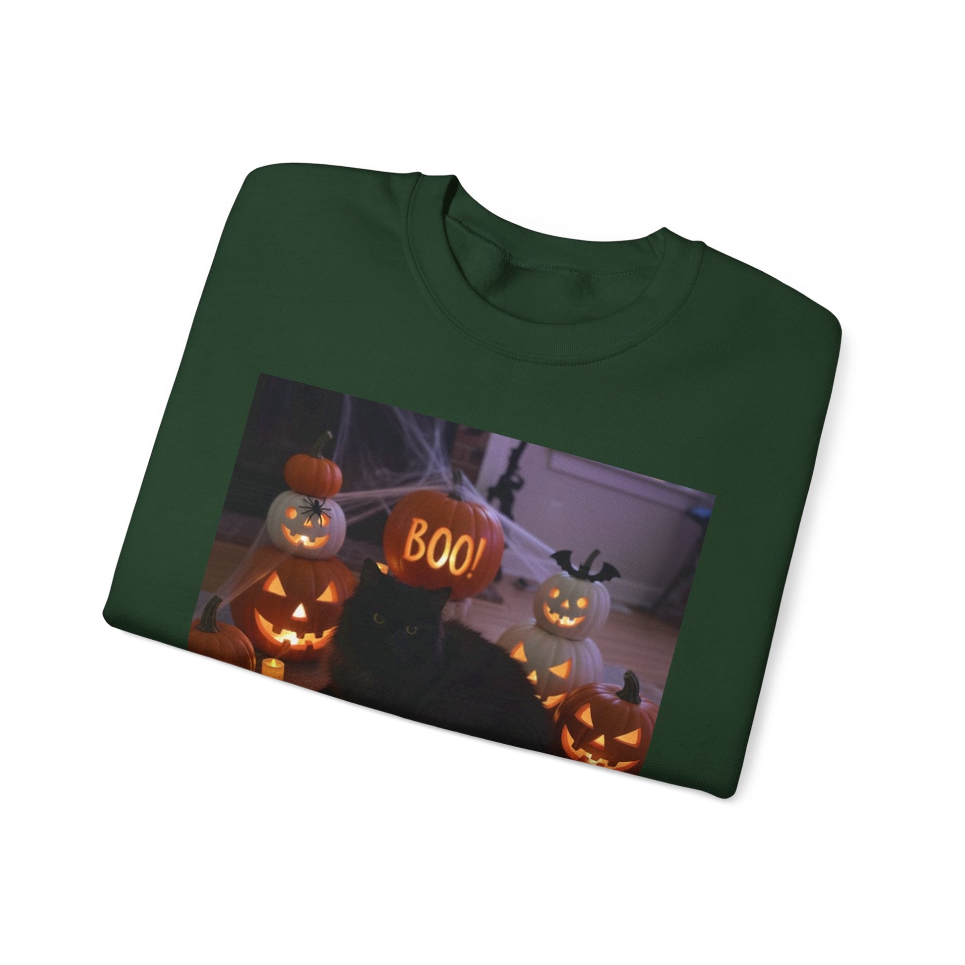 Halloween Cat Sweatshirt, Cozy Fall Apparel, Spooky Cat Crewneck, Unisex Sweatshirt, Boo Design Sweatshirt