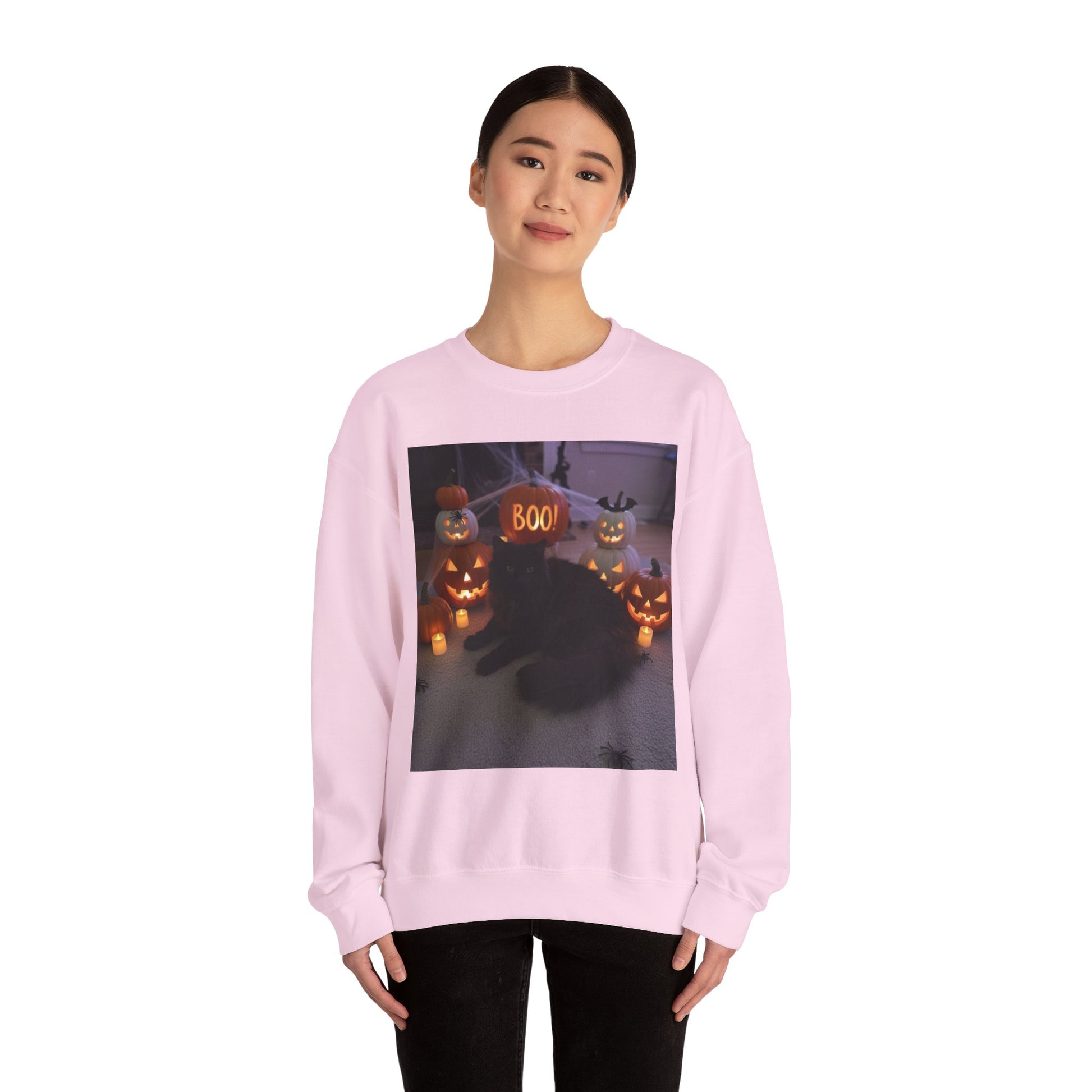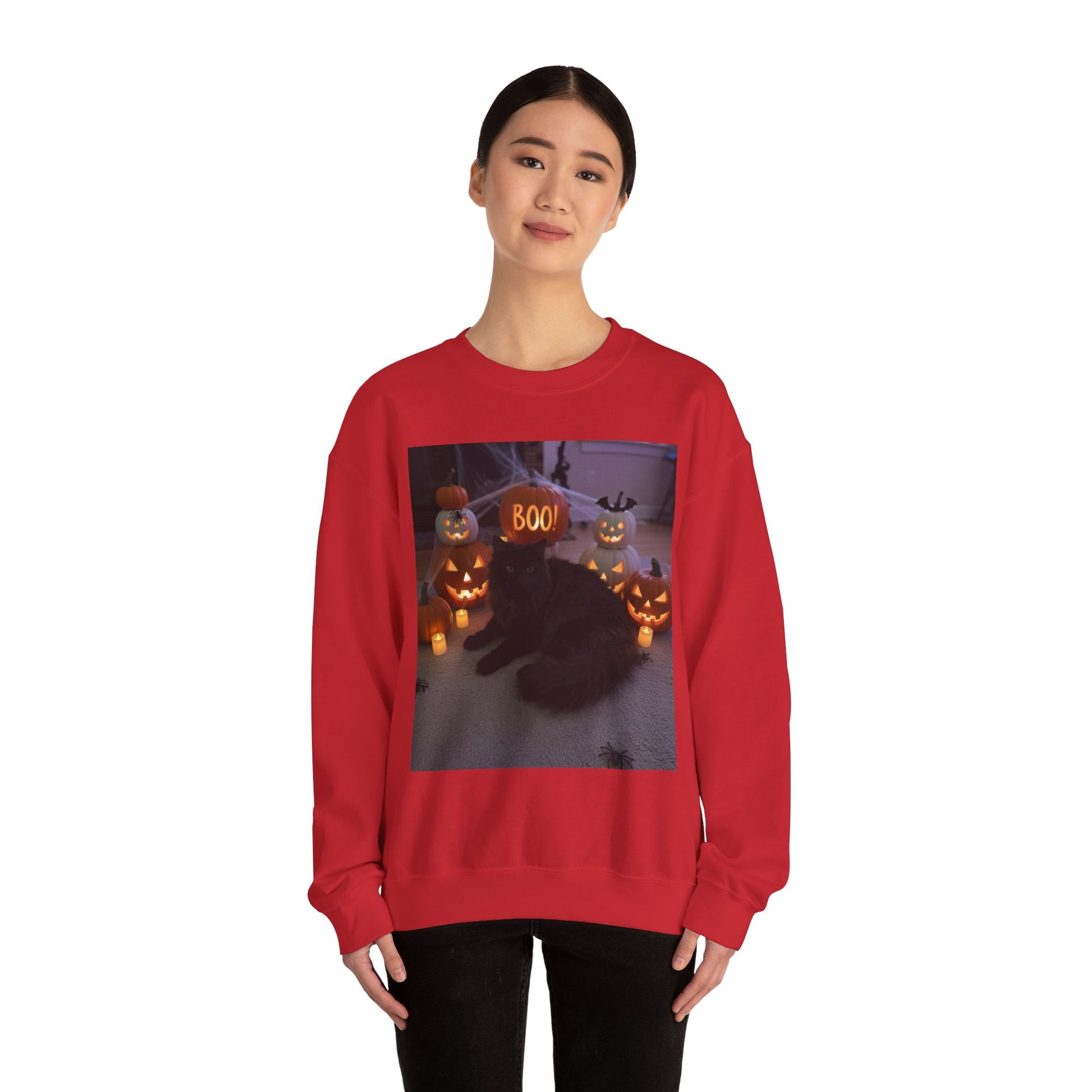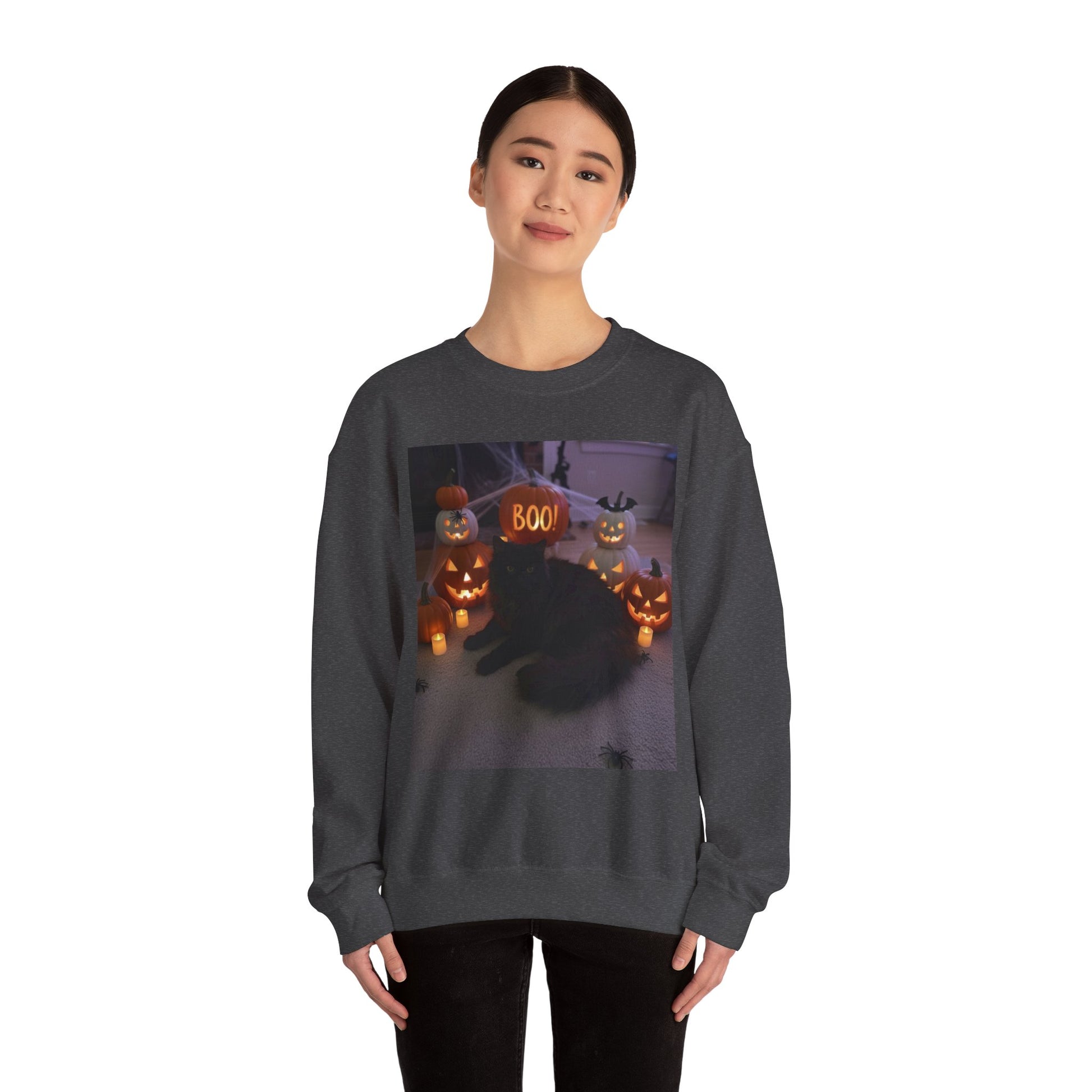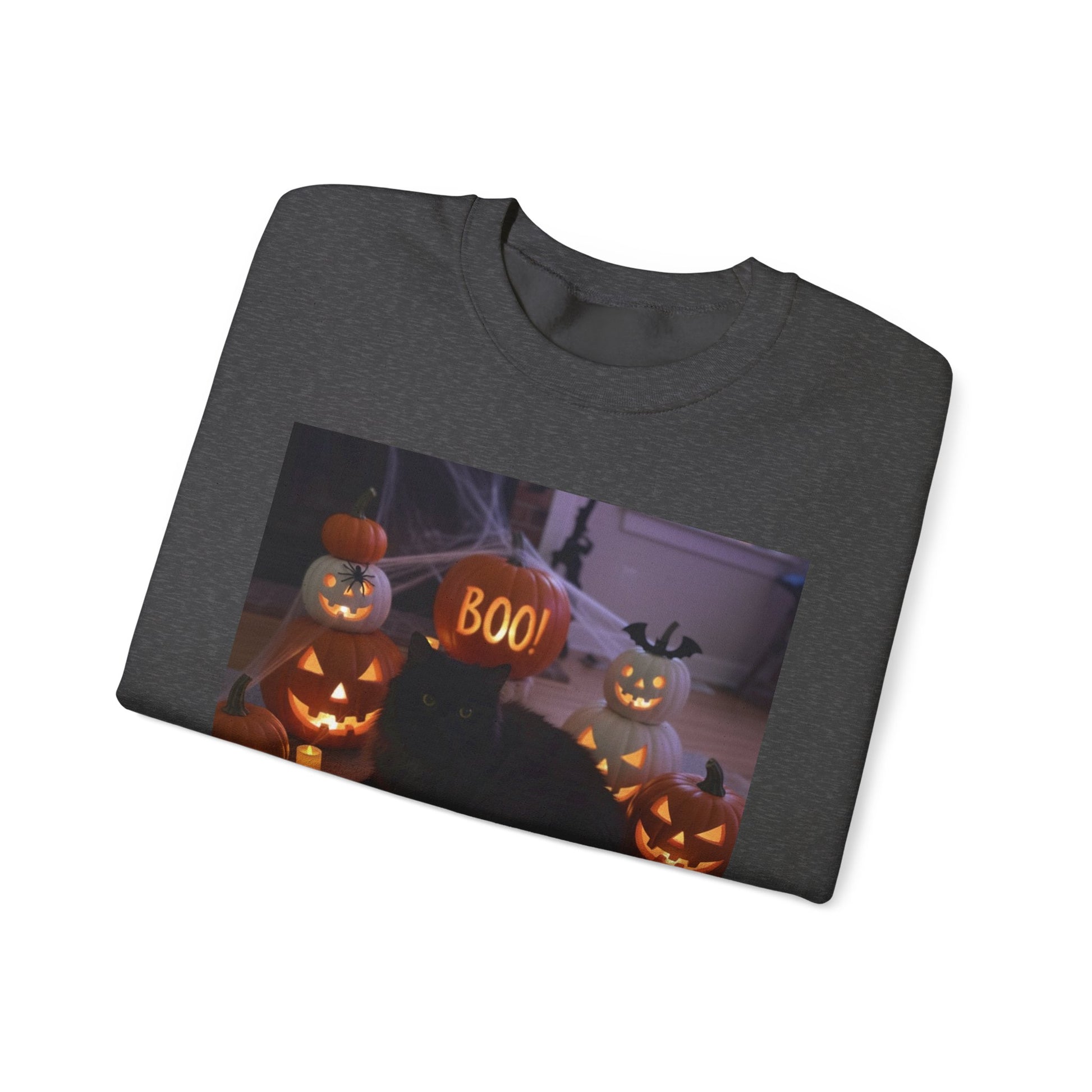Halloween Cat Sweatshirt, Cozy Fall Apparel, Spooky Cat Crewneck, Unisex Sweatshirt, Boo Design Sweatshirt