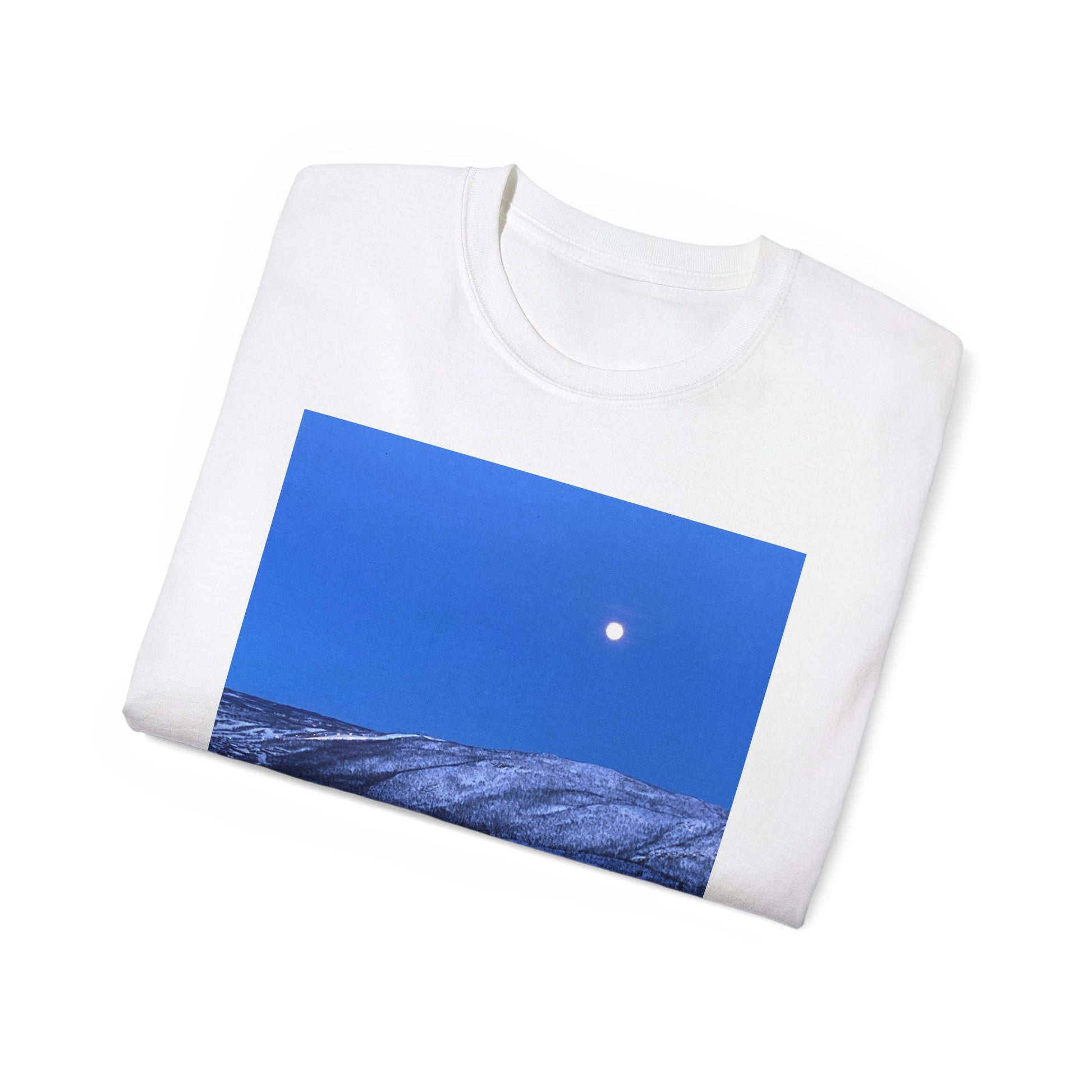 Moonlit Mountains Unisex T-Shirt, Nature Lover Tee, Graphic Tee, Outdoor Adventure Shirt, Relaxed Fit, Casual Wear